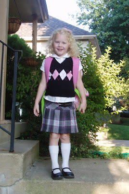 Here stands my brand new kindergartner...on the same front steps we carried her up almost 6 years ago, her first day home from the hospital. Was I ready then? No. Was I ready yesterday for this new venture? No. Will I ever be ready for a new milestone in their lives which only points closer to their independence from me?