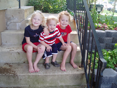 I was outside with the kids this morning while they splashed about in their blow up pool. It's large enough for all three of them to fit with plenty of room to spare when ol' mom wants to wade through and cool down.